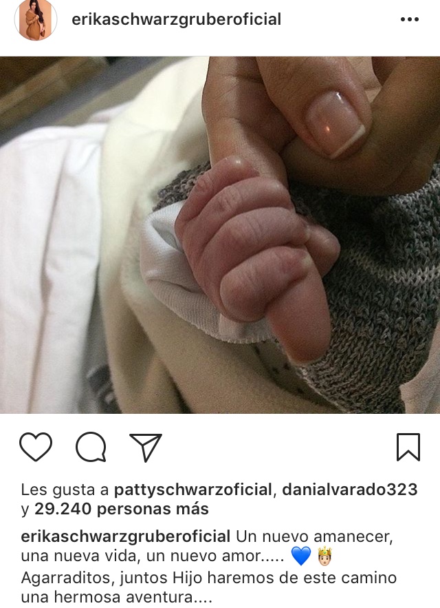 La madre del bebé también realizó un emotivo post. «Un nuevo amanecer, una nueva vida, un nuevo amor. Agarraditos, juntos hijo haremos de este camino una hermosa aventura… Bienvenido a este mundo mi pequeñito», escribió la menor de las Schwarzgruber.