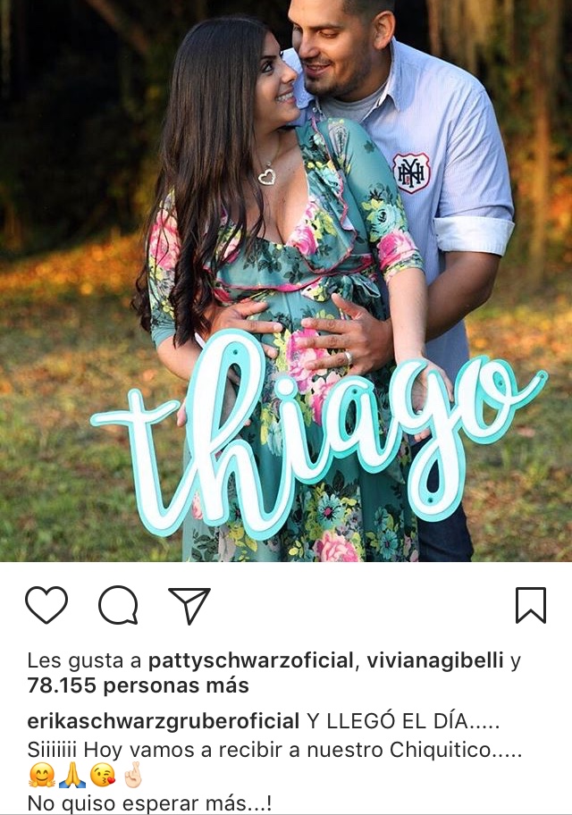 Este viernes 5 de enero, la actriz venezolana Erika Schwarzgruber utilizó su cuenta de Instagram para anunciarle a sus seguidores que daría a luz a Thiago León, su primer hijo, fruto de su relación con su esposo Abraham León.