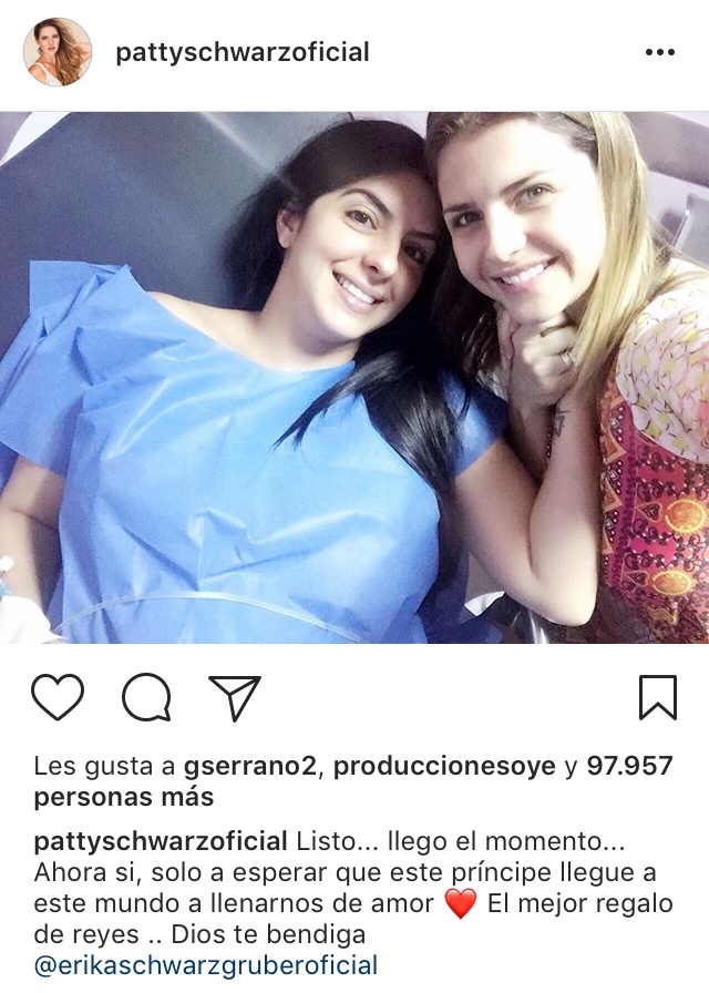 Por su parte, su hermana Patricia Schwarzgruber también recurrió a su cuenta en Instagram para mantener al tanto a todos sus seguidores del proceso de parto. De hecho, compartió una fotografía con Erika justo antes de entrar al quirófano con el mensaje: «Ahora sí, solo a esperar a que este príncipe llegue a este mundo a llenarnos de amor».