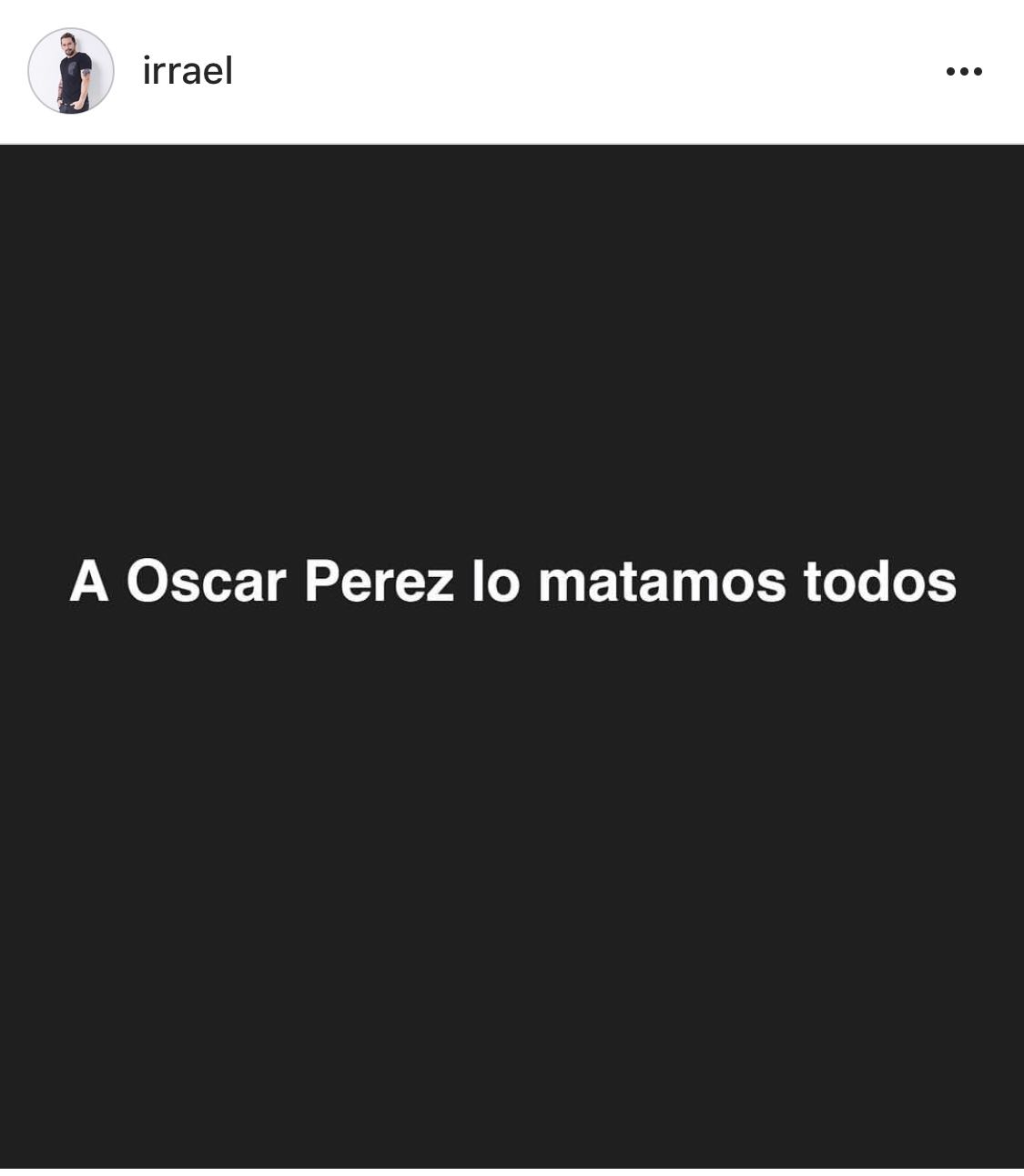 El esposo de la vedette venezolana, Diosa Canales, recurrió a su cuenta en Instagram luego de que Irrael Gómez emitiera un polémico comentario sobre el asesinato del exfuncionario del CICPC, Óscar Pérez.