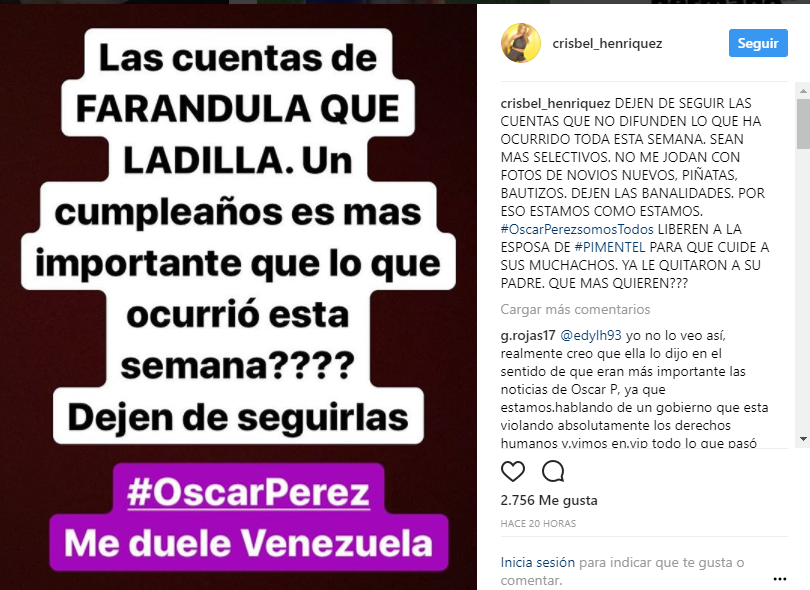 «Las cuentas de farándula QUE LADILLA, Un cumpleaños es más importante que lo que ocurrió esta semana» reza uno de los textos que la actriz compartió en su cuenta de Instagram con la etiqueta #OscarPerezMeDuelesVenezuela.