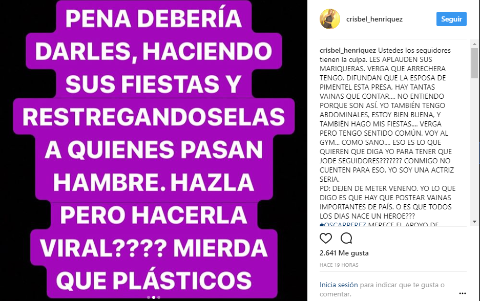 La actriz venezolana Crisbel Henrriquez estalló en sus redes sociales publicando una serie de imágenes en donde hace una dura crítica a la farándula venezolana y a algunos personajes que se dedican a celebrar.