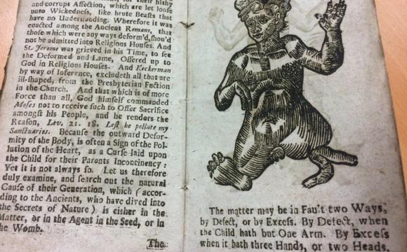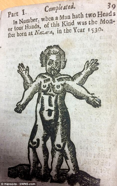 El manual del siglo XVII advierte a las mujeres que si tienen relaciones sexuales con animales pueden procrear monstruos. Un elocuente dibujo muestra las posibles consecuencias: un hombre con larga cola y un niño con los brazos cubiertos de plumas y patas de gallo.