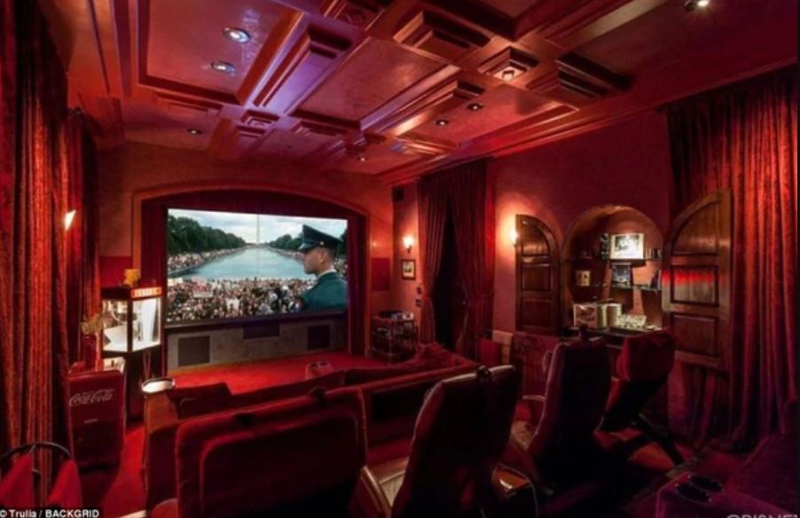 La impactante casa está diseñada con todas las comodidades para recibir invitados. Tiene dos cocinas, una sala gigante, gimnasio, cuarto de juegos, un teatro para ver cine y dos piscinas.