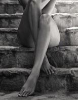 Las imágenes en blanco y negro forman parte de una sesión artística con la fotógrafa Sasha Samsonova. En ellas, la famosa cubre sus senos y partes íntimas con sus manos y piernas.