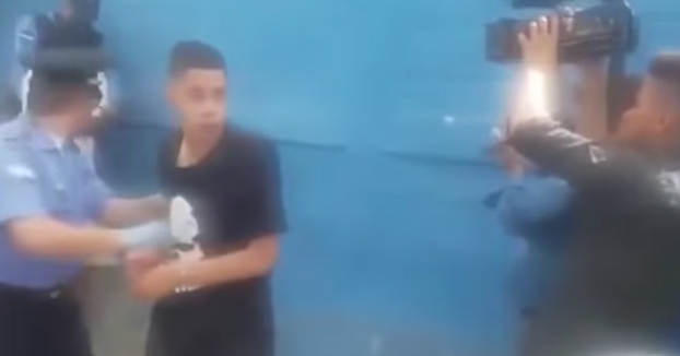 Un sujeto fue detenido por la policía hondureña por haber cometido un delito de robo y, al parecer, estaba de pocos ánimos. En el video, se puede ver claramente cuando el apresado -enojado- le propina una patada voladora a uno de los camarógrafos del diario hondureño «La Prensa». La cámara voló hasta caer al suelo, no obstante, reportero siguió en su labor de informar y recogió su equipo reporteril.