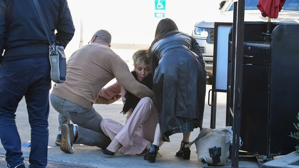 Sharon Stone protagonizó un papelón en las calles de Beverly Hills el sábado pasado. La protagonista de Bajos Instintos, de 59 años, perdió el equilibrio y se desplomó en el piso.