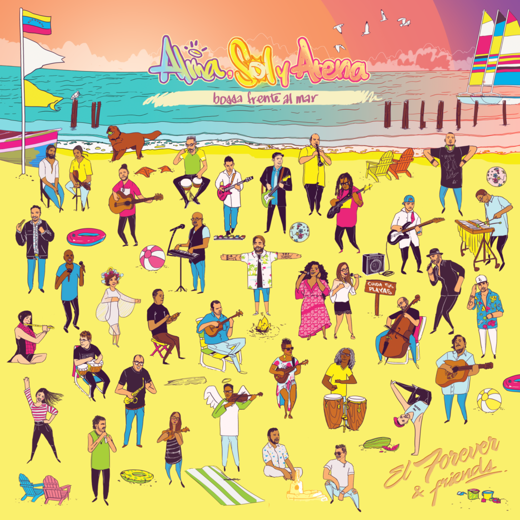 El aporte musical de esta producción lo encabeza el maestro Carlos “Nené” Quintero, quien junto a músicos de la talla de Alfredo Naranjo (marimba), Alfredo “Cheché” Requena (clarinete), Jorge Glem (cuatro), Manuel Álvarez (guitarra acústica), Manuel Barrios (saxo), María Fernanda González (bandola), María José León (flauta barroca), Miguel Ángel Mieres + (violín), Pedro Guevara (armónica), Pedro Isea (pandeiro), Pedro Vásquez (chelo), Raimond Linares (maracas), Roberto Moreno (percusión) y William Morales (guitarra acústica), dieron un toque único con cada instrumento. Co-producido por El Forever y José Ramón Carranza, “Alma, Sol y Arena bossa frente al mar” inició como un sueño experimental del cantautor y se convirtió en una joya musical que reúne el talento de prodigiosos músicos y artistas que por su talento y trayectoria tienen un gran valor para la música latinoamericana.