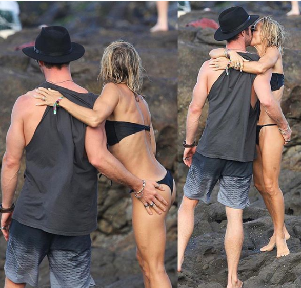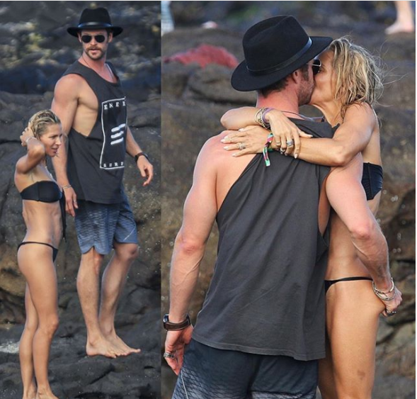 En plena playa, mientras paseaban por unas rocas, el matrimonio literalmente no podía separarse. Además de compartir abrazos y besos, vimos incluso cómo el actor que interpreta a Thor en el Universo Cinematográfico de Marvel, en un gesto juguetón, le tocaba el trasero a su mujer, reseñó El Mundo.