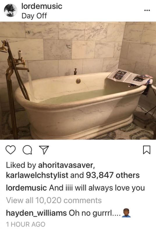 La cantante Lorde ha sido criticada durante las últimas horas luego de compartir a través de su Instagram la foto de una bañera junto a una cita de Whitney Houston.