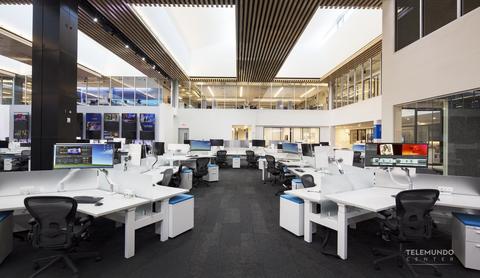 El edificio de tres pisos y 476,000 pies cuadrados está lleno de estaciones de trabajo estilizadas, una decoración minimalista, espacios abiertos y estudios de alta tecnología. También es una manifestación física del enfoque a futuro que Telemundo Enterprises está tomando en la turbulenta industria de la televisión y los medios en español.