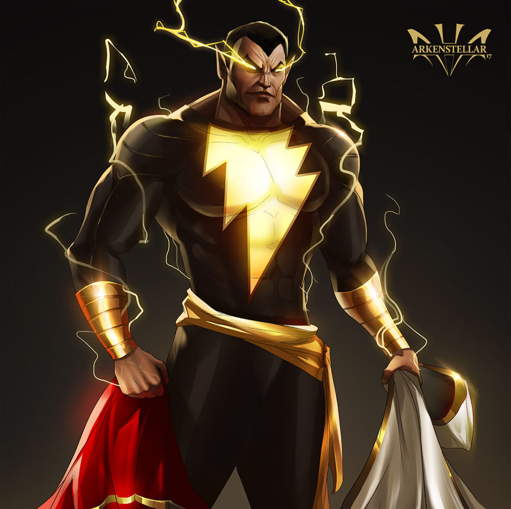 Black Adam es el enemigo por excelencia de Shazam. Los poderes de ambos personajes funcionan igual, pues solo tienen que gritar «¡Shazam!», pero el significado de este acrónimo es diferente en cada caso. Mientras que con Shazam es la unión de los dioses Salomón, Hércules, Aquiles, Zeus, Atlas y Mercurio; en el de Black Adam es la de los dioses egipcios Shu, Horus, Amon, Zehuti, Atón y Mehen.