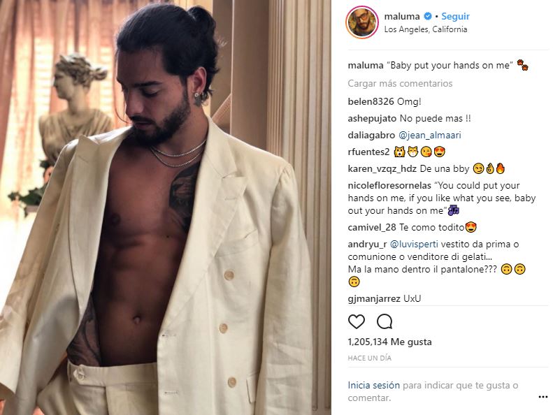 Maluma, el sensual cantante colombiano que despierta pasiones en todas sus fanáticas, sobrepasó los límites con esta fotografía que publicó el día de ayer en su Instagram, en la que sale introduciendo una mano en lo que parece su zona íntima, junto a la frase: «Bebé pon tus manos sobre mí»