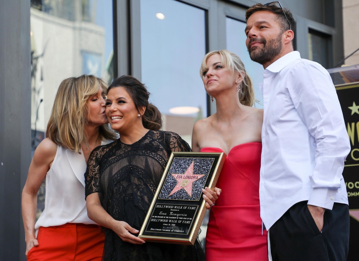 La actriz Eva Longoria, embarazada de su primer hijo y visiblemente emocionada, recibió este lunes su estrella en el Paseo de la Fama de Hollywood, la número 2.634, en una ceremonia donde estuvo acompañada por Ricky Martin, Felicity Huffman y Anna Faris.