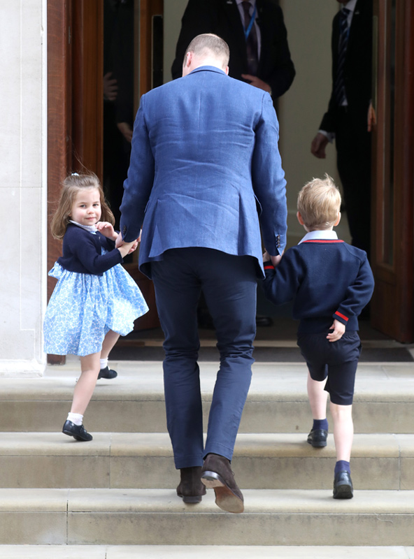 Una hora antes de su salida, el príncipe Guillermo abandonaba el hospital para ir a recoger a sus dos hijos y que estos fuesen los primeros en conocer al nuevo miembro de la familia. Minutos después, el heredero a la corona británica regresaba con los pequeños, quienes se han mostrado muy ilusionados a su llegada, principalmente Charlotte, que no ha parado de saludar a las decenas de personas que se agolpaban a las puertas del centro. Tras conocerle y minutos antes de la salida de sus padres, ambos hermanos han regresado a casa para esperar allí a sus padres y su nuevo hermanito.