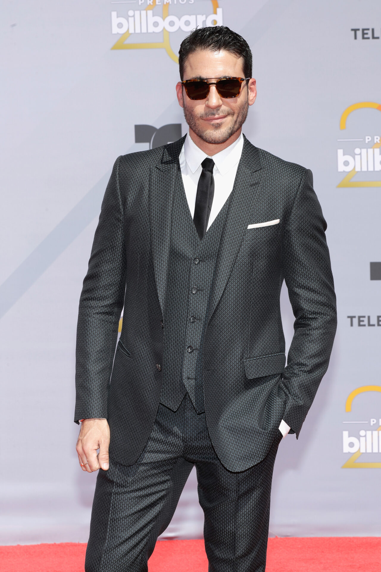Muy elegante con su traje gris de Dsquared2 y sin corbata o pajarita, el boricua posó ante los flashes con este nuevo look con bigote.