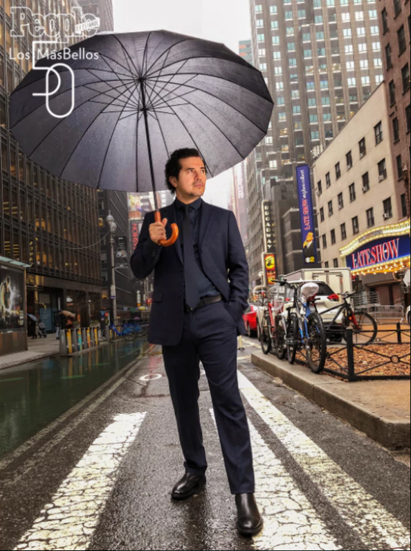 Mientras que John Leguizamo soportó la lluvia y se dejó retratar bajo un paraguas en Broadway.