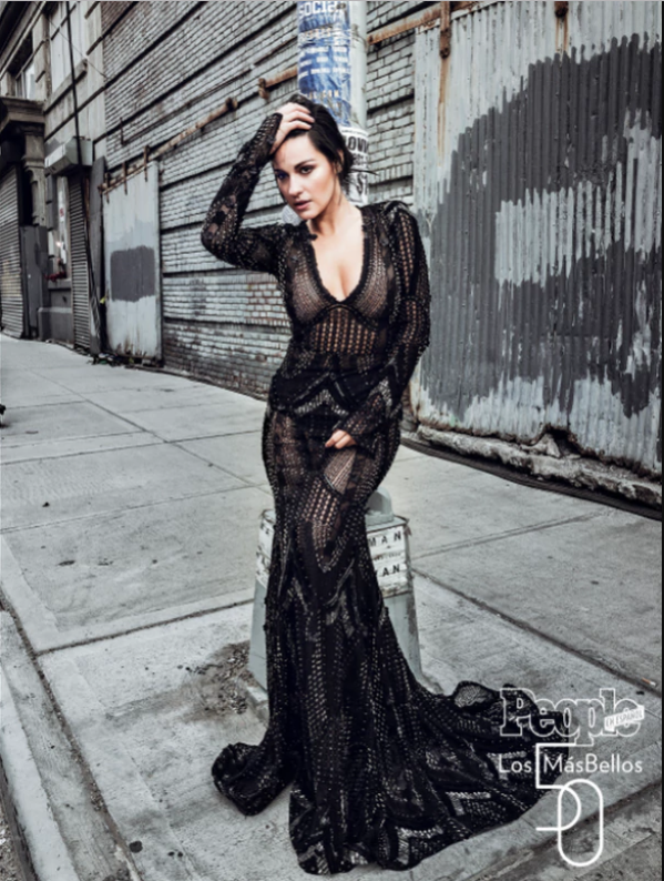 Por cuarta vez, Maite Perroni forma parte de este selecto grupo de artistas y luce un sensual vestido negro con transparencias. La mexicana, protagonista de la exitosa novela Triunfo del amor, reveló que durante la sesión de fotos se «murió» de frío.