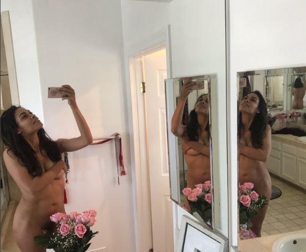 Aparentemente está en la habitación de una casa, y para no llegar al «triple equis», la neoyorquina tapó con su brazo el área de sus senos, posó cerca de unas rosas rosadas que taparon su parte genital. Sin embargo, por el reflejo de los espejos que están detrás, su pompis quedó completamente al descubierto. Acompañó la imagen con el siguiente texto: