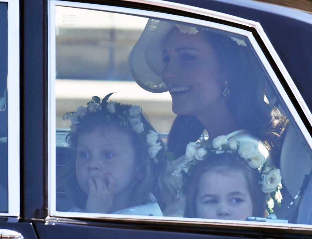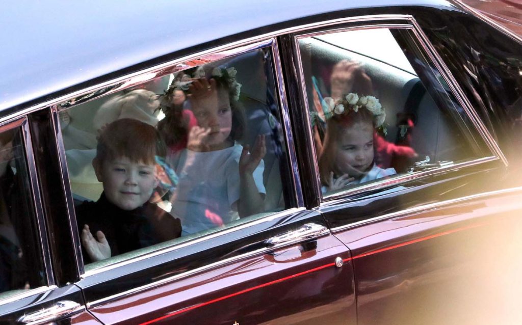 La adorable niña de tres años se unió a las demás damas de honor con lindos vestidos blancos y diademas florales mientras esperaban la llegada de Meghan.