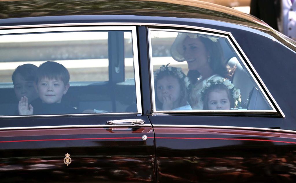 Kate Middleton ayudó a restablecer el orden. Vestida con un vestido de chaqueta y sombrero, ayudó a las damas de honor a entrar a la capilla.