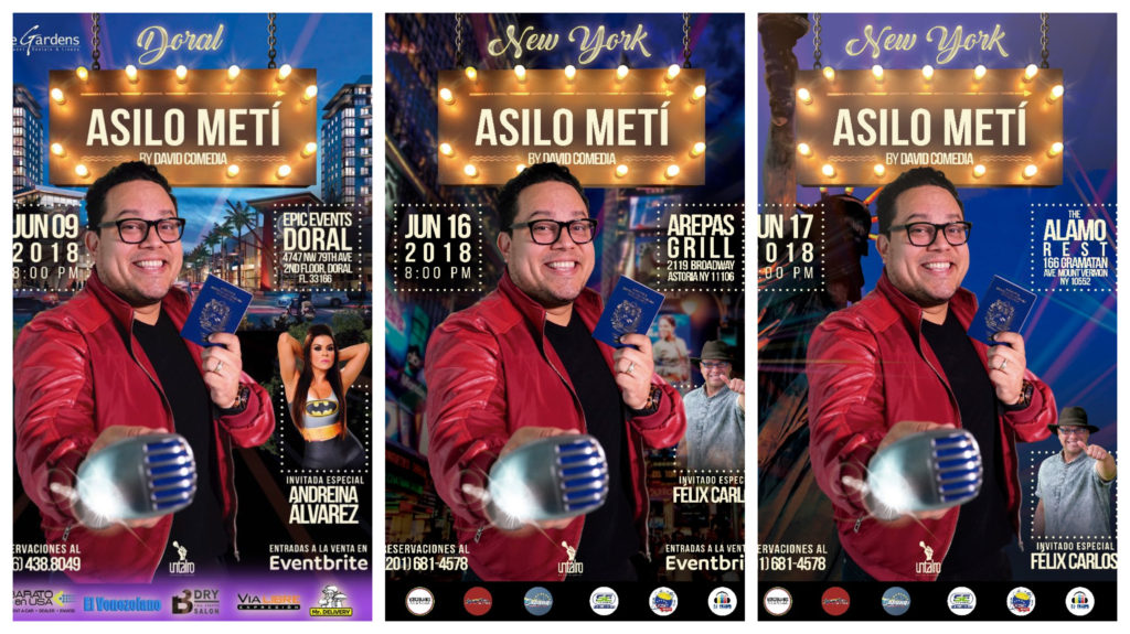 «Así lo metí», es el nuevo Show que Comedia trae para el 2018 inspirado en anécdotas y situaciones jocosas que vivió desde el primer momento en que llegó a los EEUU con las cuales muchos venezolanos se sienten identificados.