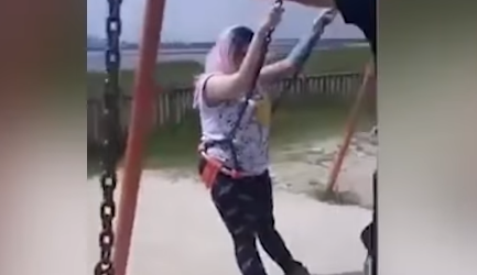 Una mujer de 23 años identificada como Megan Kenway-Head, se quedó atascada en un columpio mientras intentaba enseñarles a sus hijos cómo utilizar la atracción del parque.