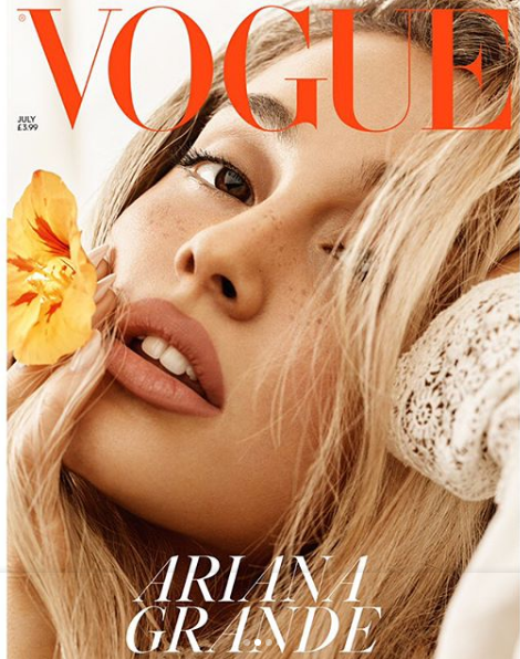 Ariana Grande es la encargada de engalanar la portada de julio de la versión británica de la revista Vogue, la cual además lleva el titular de “El año que cambió todo”.