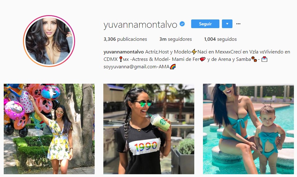 «Actriz,Host y Modelo⚡Naci en Mex??Crecí en Vzla ??Viviendo en CDMX ??? -Actress & Model- Mami de Fer? y de Arena y Samba?», es el texto que puede leerse en la cuenta personal de Yuvanna Montalvo.