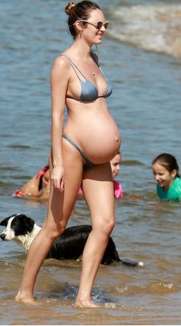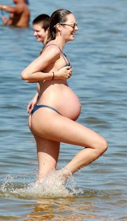 Incluso, su traje de baño se desajustó y tuvo que sostenerlo para evitar que se dejaran ver sus atributos. La modelo conserva su figura aun cuando está tan cerca de dar a luz.