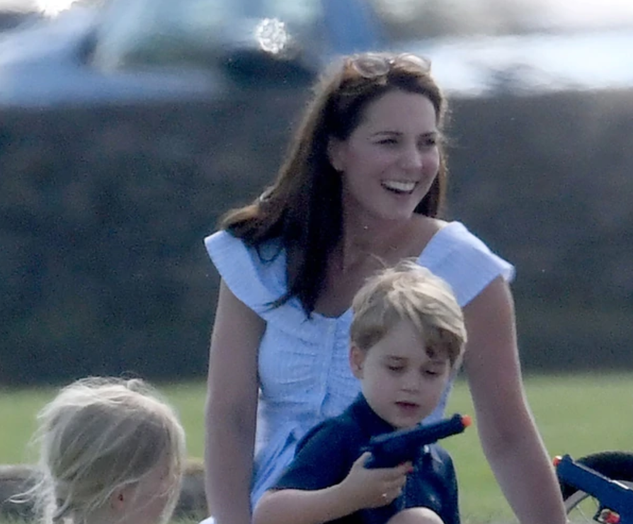 Por su parte, la duquesa de Cambridge y madre del pequeño se mostró sonriente y disfrutando del evento mientras que el pequeño jugaba a disparar con su pistola.