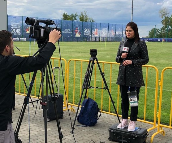 Desde hace días, la periodista venezolana Carolina Padrón ha causado sensación en las redes sociales por sus increíbles fotografías desde Rusia, país al que pudo viajar para cubrir la Copa Mundial de Fútbol 2018, junto al equipo de la cadena televisiva internacional ESPN.