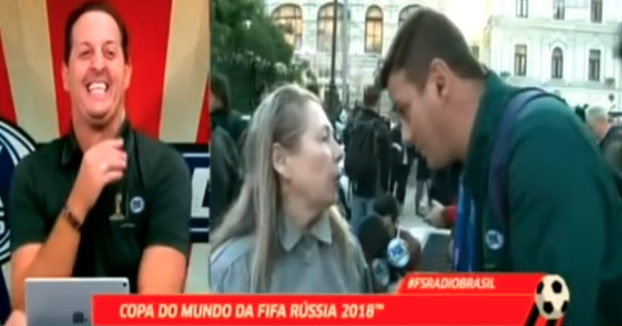Hace poco, una divertida escena que tuvo lugar durante un directo en la cadena brasileña Fox Sports. El periodista deportivo, Jackson Pinheiro se encontraba en el centro de Moscú con motivo del Mundial cuando una señora se le acercó coreando «Vamos Rusia!» y se puso a hablar con él. Pero las únicas que palabras que Jackson sabía en ruso era ‘gracias’ y ‘si’, haciendo que el diálogo fuese surrealista.