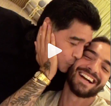 «No sé si ustedes conozcan a este hombre, no sé si lo han visto antes», señala Maluma antes de mostrar con la cámara de su celular a un sonriente Maradona.