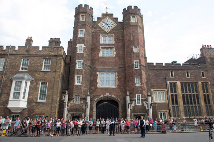Horas antes de que tuviera lugar el servicio religioso se anunciaba que la Reina de Inglaterra no estaría presente en el acto. Es la primera vez que Isabel II se ausenta de la ceremonia bautismal de un hijo de los Duques de Cambridge. Tampoco ha asistido el Duque de Edimburgo, una ausencia previsible ya que, desde que anunció que se retiraba, es contada su presencia en actos públicos.