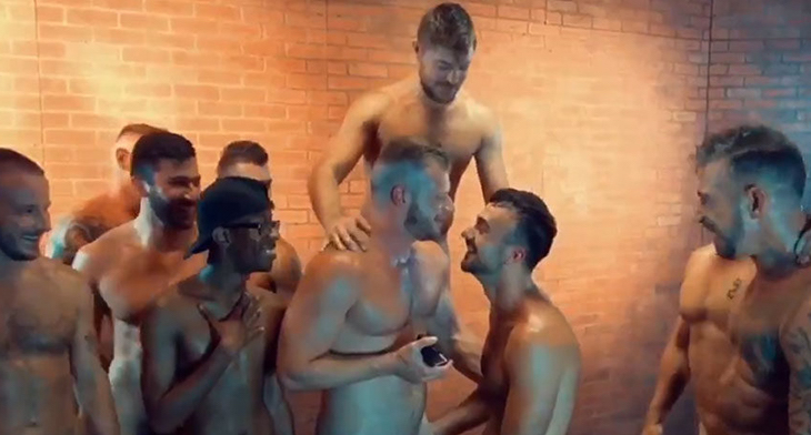 Durante el video compartido en las redes sociales, se muestra a Bonds cuando comienza a besar a su pareja en medio de un grupo de hombres desnudos; y mientras se masturban el actor le declara su amor.