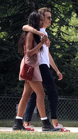 Malia, con minivestido marrón, bolsa y botas, iba abrazada de su novio, a quien conoció en Harvard el curso pasado y se les empezó a ver juntos desde enero de este año.