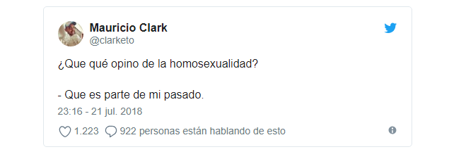 El animador de la famosa cadena televisiva mexicana Televisa, Mauricio Clark aseguró en su twitter que su homosexualidad había quedado en su pasado, lo cuál estalló gran polémica en la red social.