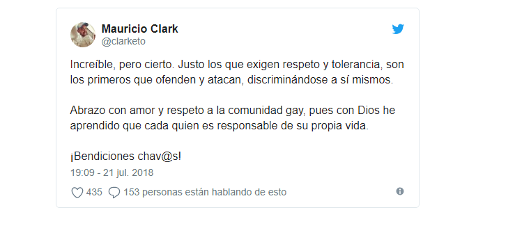 El presentador publicó en su cuenta de twitter “¿Qué opino de la homosexualidad? Que es parte de mi pasado” desde ese momento los comentarios de sus seguidores no se dieron esperar, unos en apoyo y otros en contra de dicha declaración.