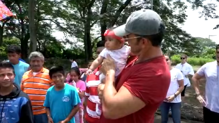 “Esta niña es un símbolo de todo esto. El video (del rescate) le dio la vuelta al mundo, se trataba de María Esmeralda, hoy está aquí y primero Dios va a tener su casita en poco tiempo”, añadió el cantante, que entregó la primera casita a esta familia.