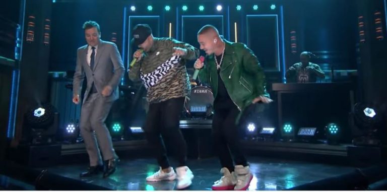 «Somos nosotros», declaró J Balvin. «Jimmy Fallon. Los loquitos están aquí», agregó Nicky Jam visiblemente emocionado de poder presentar sus canciones en el popular show nocturno estadounidense.
