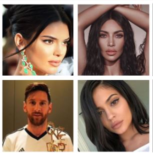 La consultora Hopper HQ, hizo un estudio sobre los famosos que perciben mayor lucro por cada publicación patrocinada. Dicho análisis involucró a 10 figuras públicas, entre ellas: