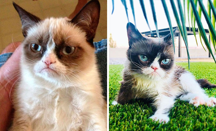 Grumpy Cat o Gato Gruñón es el mote que recibió este gato llamado Tardar Sauce tras publicarse sus fotos con cara molesta en Reddit en 2012.