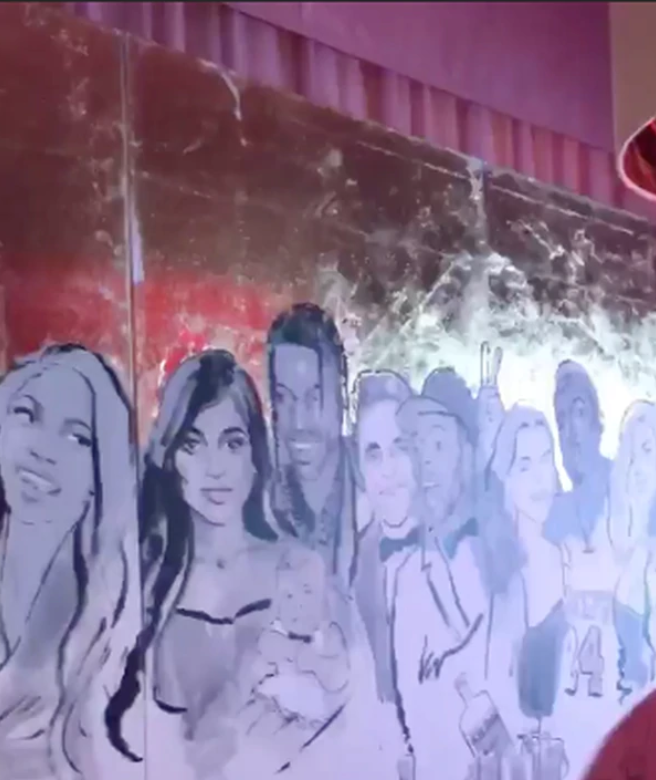 Conocidas por sus extravagantes fiestas temáticas, las Kardashian no escatimaron recursos en esta oportunidad. Siguiendo la consigna de rosa y dorado elegida por Kylie, el local fue ambientado a tono y con grandes arreglos florales que adornaban el bar, globos rosa metalizados y un mural gigante dibujado con todos los integrantes de la mediática familia. Instalaron también un pelotero con bolas blancas en una habitación privada donde las hermanas disfrutaron saltando toda la noche.
