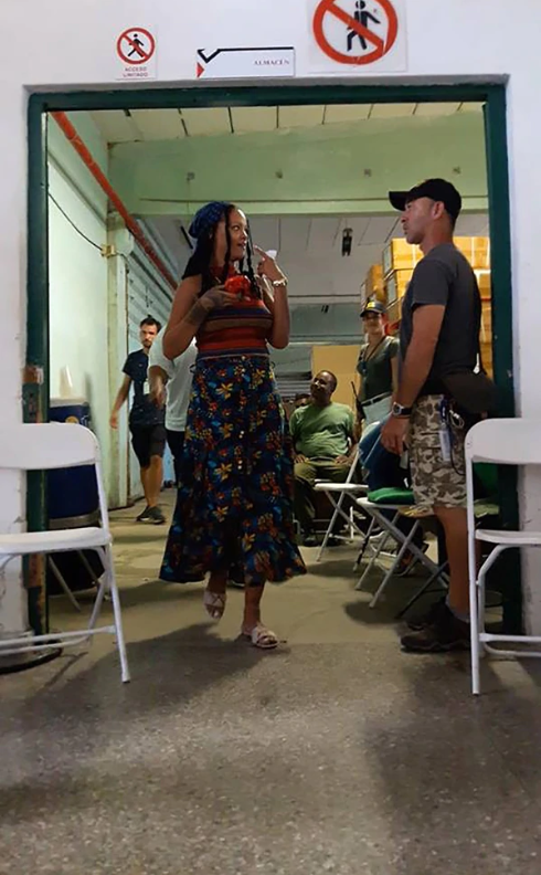 Las únicas fotografías conocidas hasta el momento sitúan a la también empresaria y actriz caracterizada como una costurera en un set de filmación armado en una fábrica textil de la barriada de Alamar, en las afueras de La Habana.
