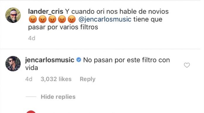 “Y cuando Ori nos hable de novios. Jencarlos, tiene que pasar por varios filtros” escribió Lander a modo de chiste, a lo que Canela no dudó en responder «No pasan por este filtro con vida”