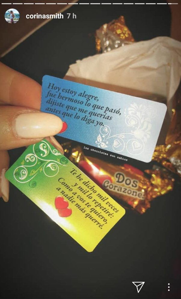 Así como lo leen, la bella rubia parece haber olvidado muy rápido su despecho y puede que haya alguien calentándole la oreja. Esto se presume tras una fotografía que la intérprete de «Completa» publicó en sus Instagram stories donde salen dos tarjetas bastante románticas y al fondo unos chocolates, ¿quién se los habrá regalado?