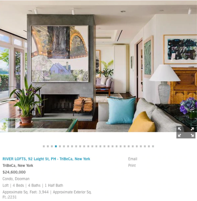 Se trata de un amplio apartamento tipo «loft» -de concepto abierto- con cuatro habitaciones, cinco cuartos de baño y una terraza de 207 metros cuadrados con vistas al río Hudson y a buena parte de Manhattan, de acuerdo a la revista Forbes.