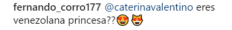 Con un millón de seguidores en Instagram, la hermosa presentadora y locutora recibió comentarios y piropos por su exuberante imagen. Entre tantos comentarios y likes, también hubo preguntas como la de Fernando, un fanático enamorado.. el cuál preguntó si nuestra Caterina es venezolana.