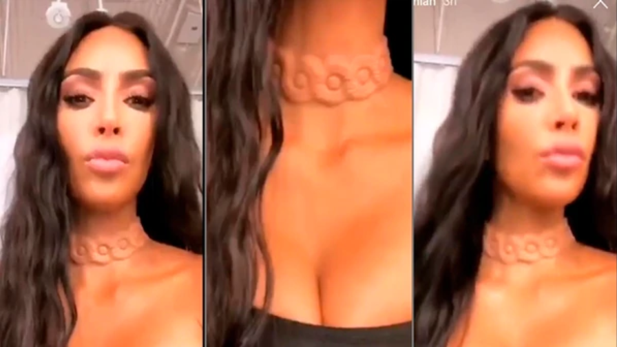 Kardashian publicó un par de videos mostrando una gargantilla – que aparente ser un implante debajo de su piel-que se ilumina al ritmo de los latidos de su corazón.